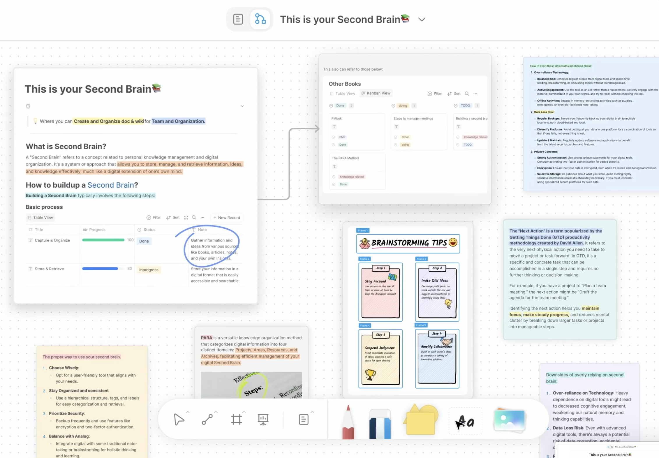 - Edgeless 模式:可以將傳統的文件頁面一鍵轉化為無限畫布的白板模式