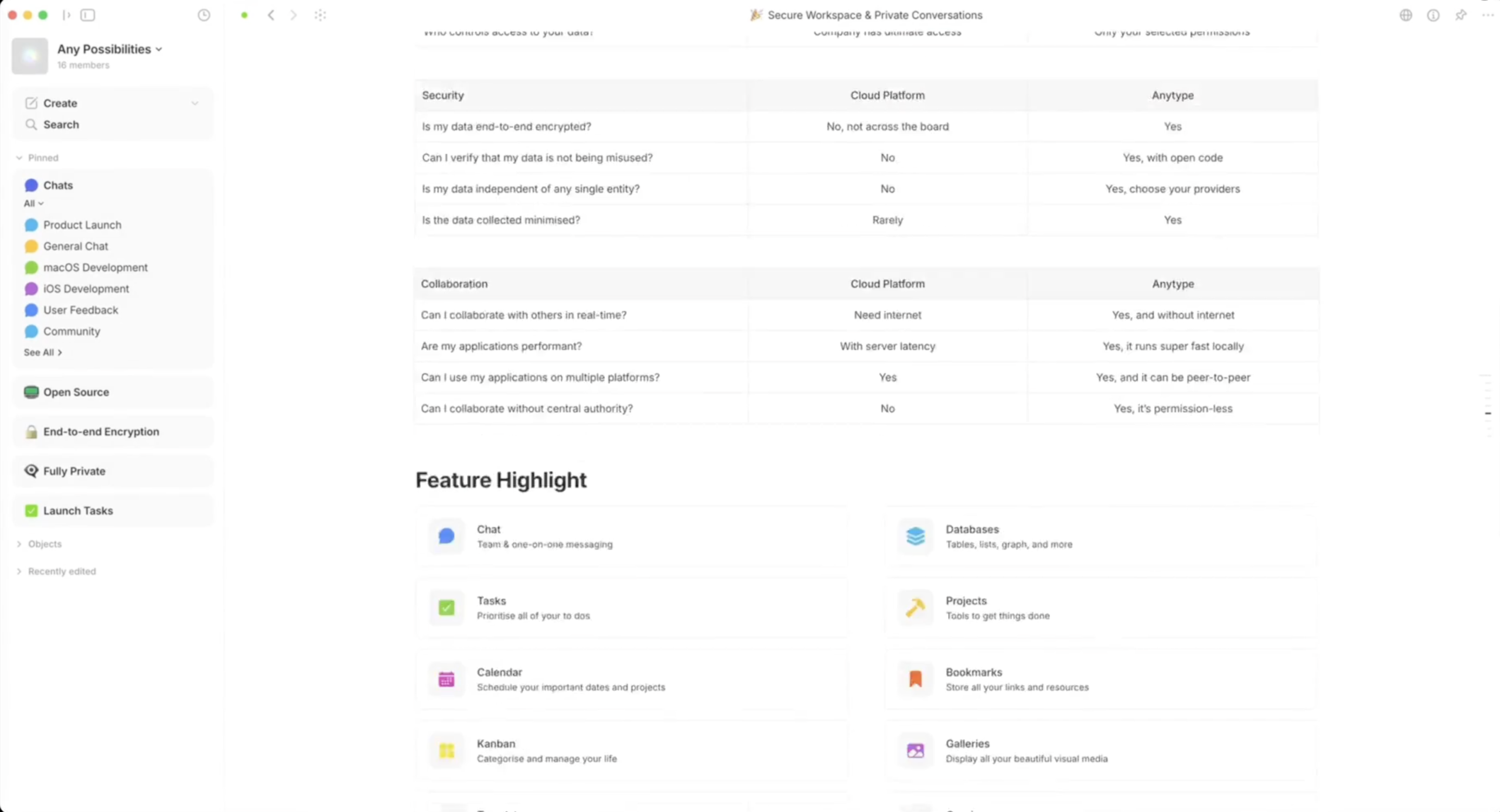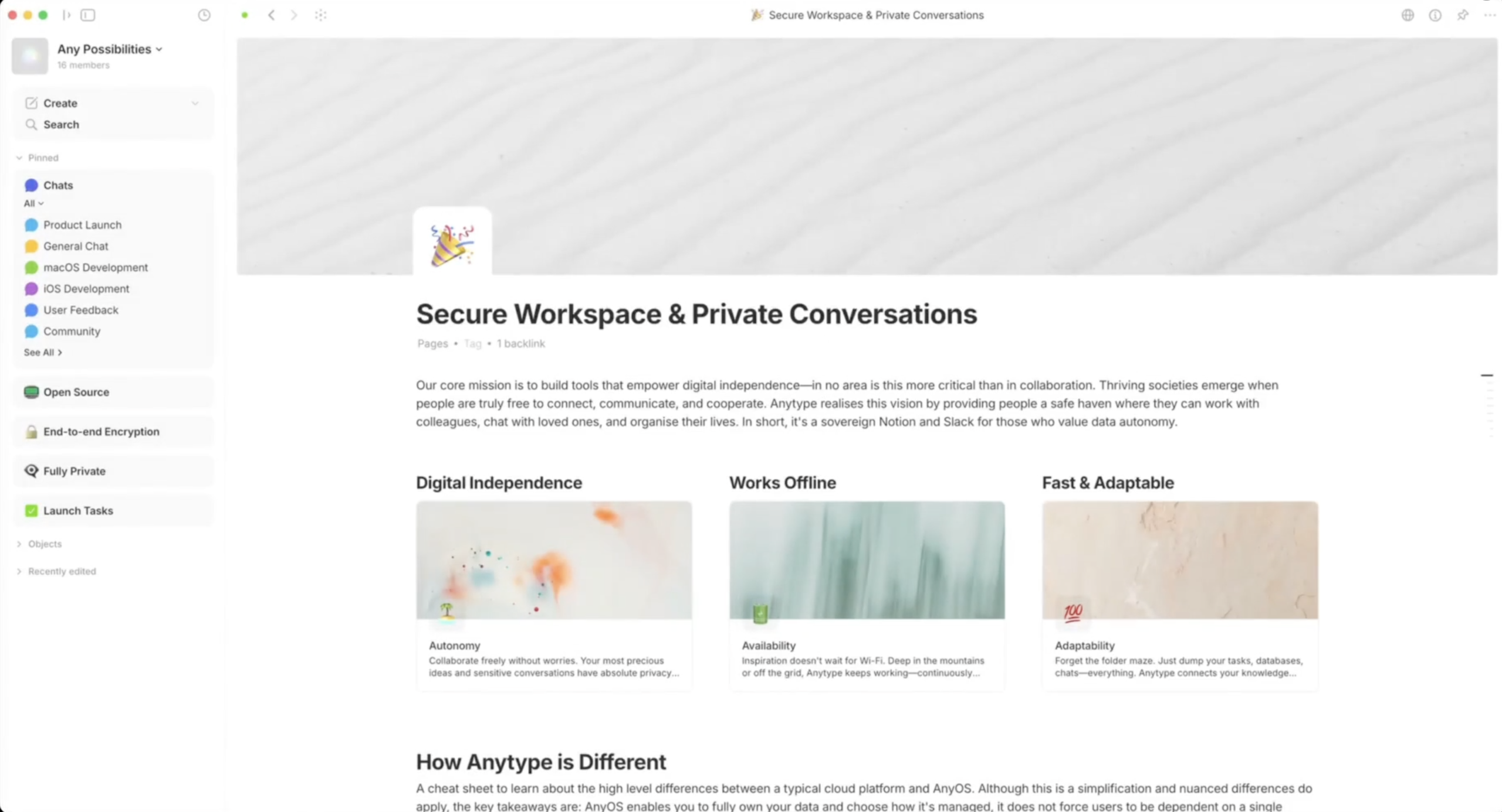 Anytype 是一個開源 (Open Source) 的去中心化知識管理平台,將筆記、資料庫、專案管理與文件編輯整合在一個「基於物件 (Object-based)」的系統中。