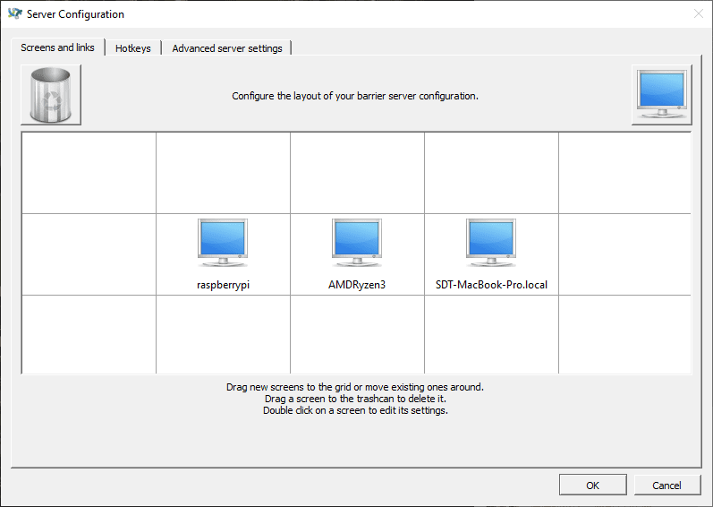 - 極簡的圖形化配置:透過直觀的拖放式介面排列螢幕位置,快速完成伺服器與客戶端設定。