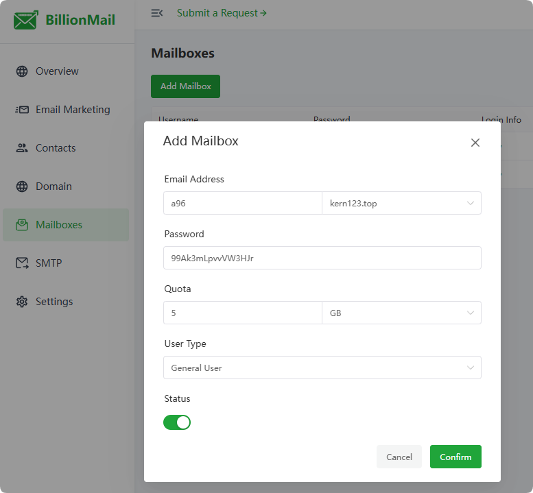 BillionMail 是一個未來的開源郵件伺服器,電子郵件行銷平台,旨在幫助企業和個人輕鬆管理他們的電子郵件行銷活動。無論您是發送電子報、促銷郵件,還是交易性訊息,這個工具都能讓您完全掌控電子郵件行銷的成效。
