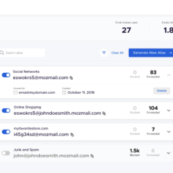 - 電子郵件遮蔽:生成隨機或自訂的 Email 別名 (Masks),將郵件轉寄至真實信箱,隨時可刪除別名以阻斷垃圾信。\