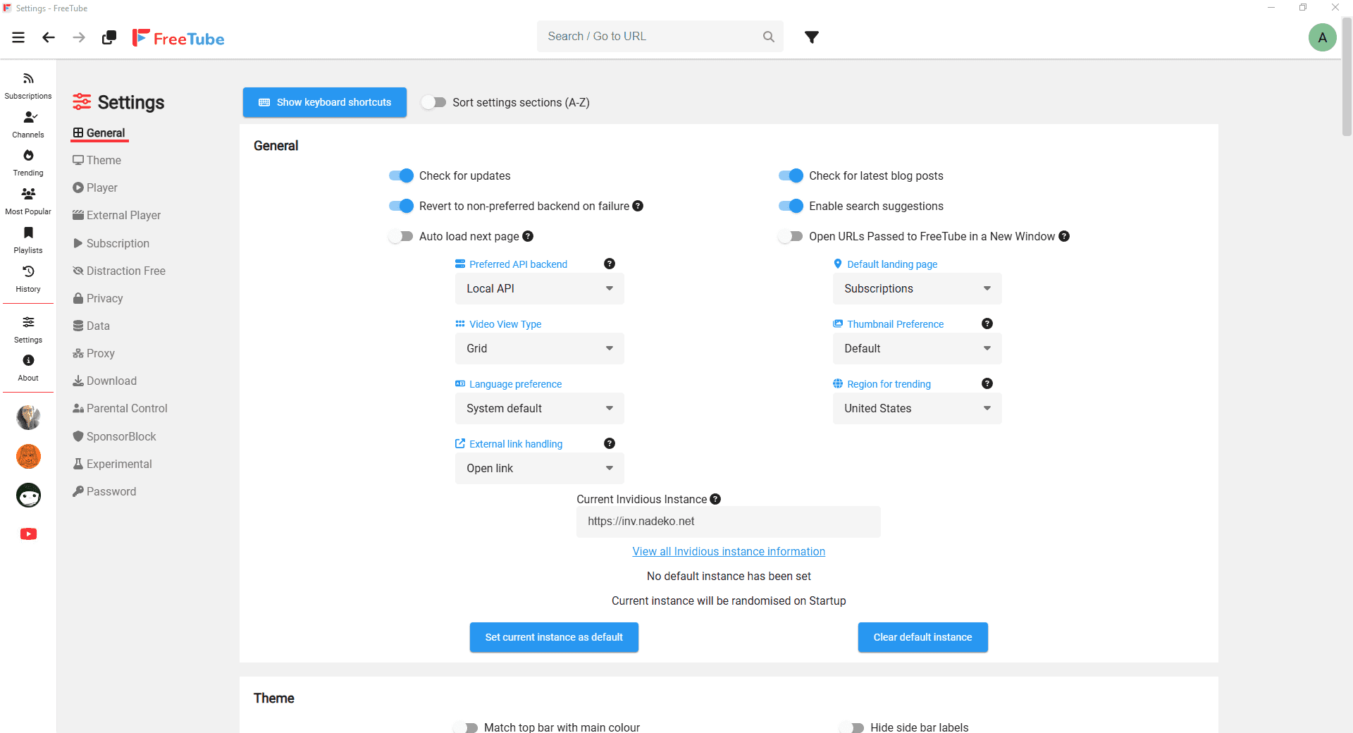 FreeTube 提供許多與官方 YouTube 類似的功能,包括:
