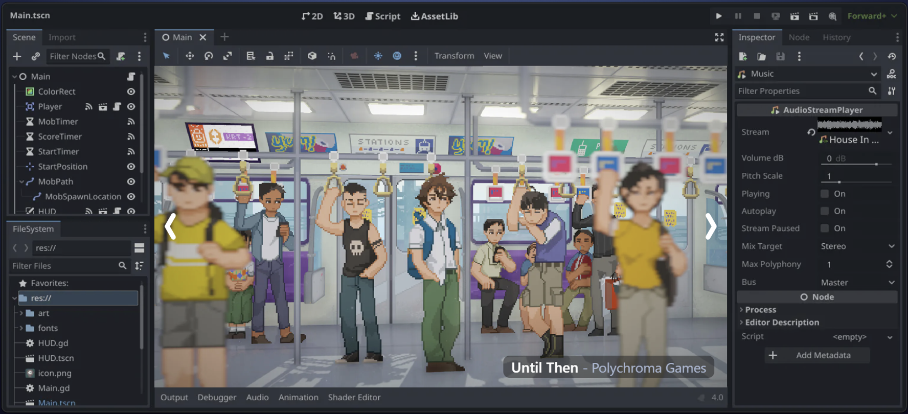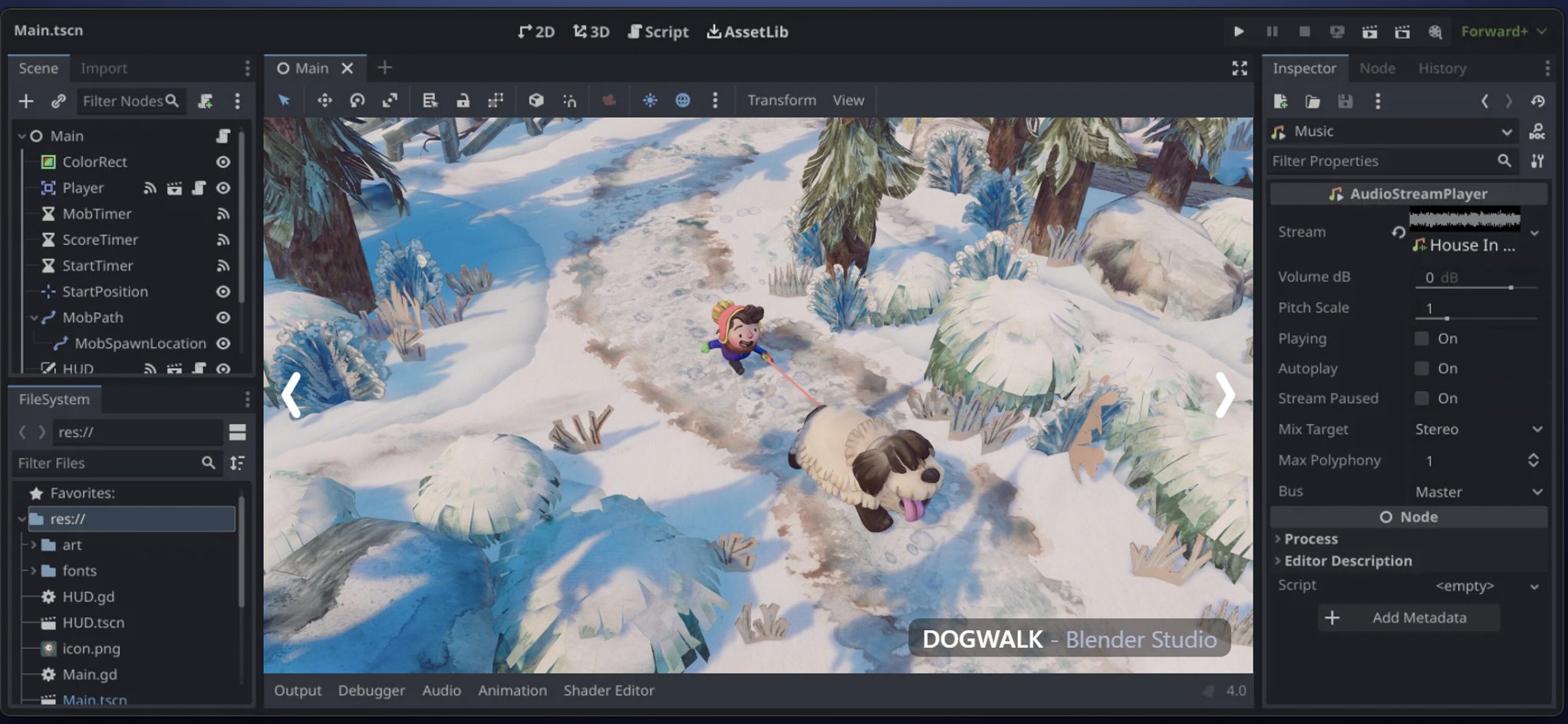 - GDScript 語言:內建專為遊戲設計的腳本語言,語法類似 Python,易學且與編輯器深度整合。亦支援 C# 與 C++。