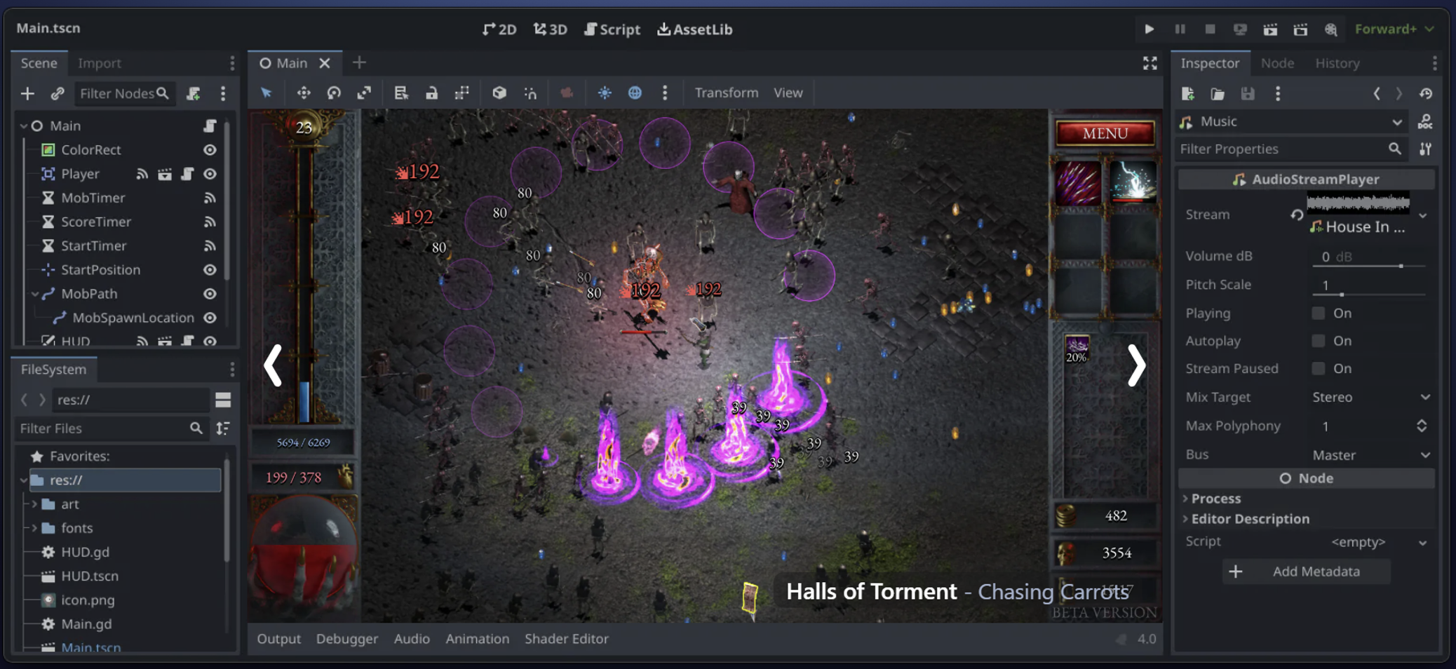 - 節點與場景系統:獨特的架構,允許將遊戲拆解為可重複使用的場景與節點,極具彈性。