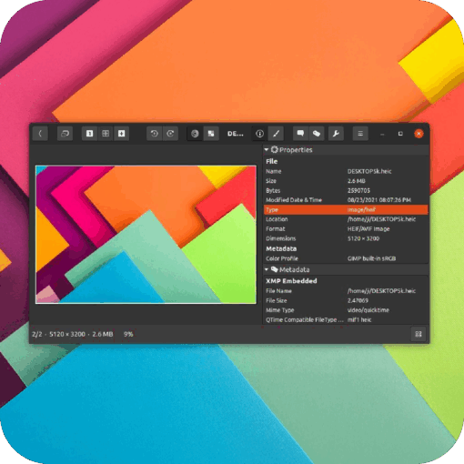 - 圖像查看方面,它支持查看包括 GIF 動畫在內的個別圖像,並支持 BMP、JPEG、GIF、PNG、TIFF、TGA、ICO、XPM、JXL、AVIF 等多種圖像類型。