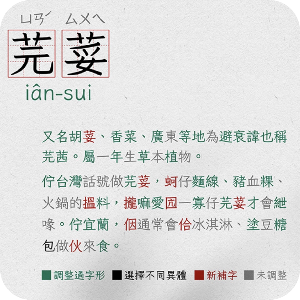 芫荽(Iansui)是基於 Klee One 改作而衍生出的繁體中文字型