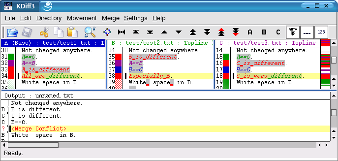 KDiff3 內建了強大的自動合併功能,能自動處理無衝突的變更,大幅節省手動操作時間。