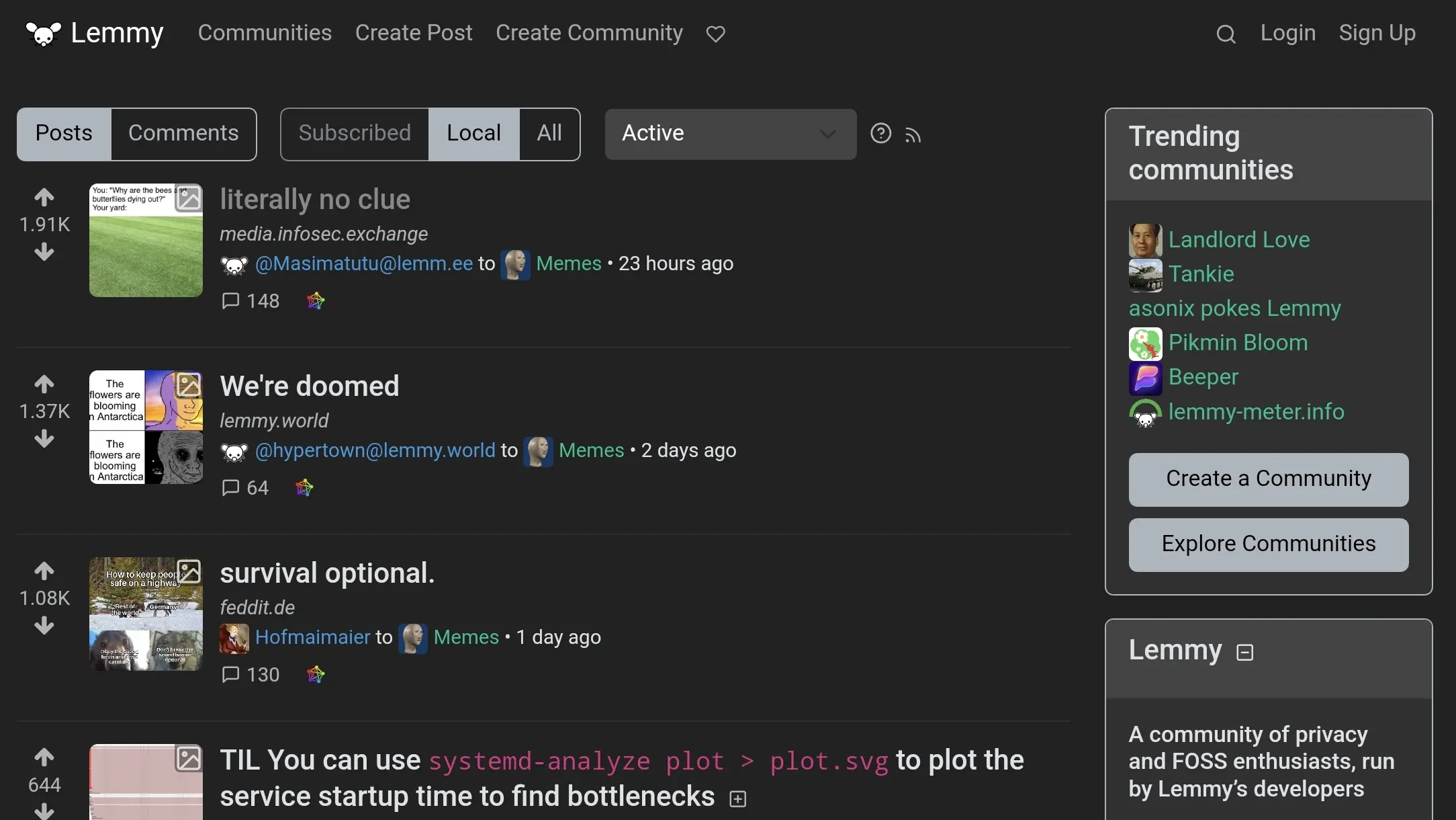 Lemmy 是一個自我架設、聯盟化的社交連結聚合與討論論壇。它由許多不同的社群組成,專注於不同主題。用戶可以發布文字、連結或圖片,並與他人討論。投票有助於將最有趣的項目推到最前面。有強大的管理工具可以防止垃圾訊息和網路酸民。這一切都完全免費且公開,不受任何公司控制。這表示沒有廣告、追蹤或秘密演算法。