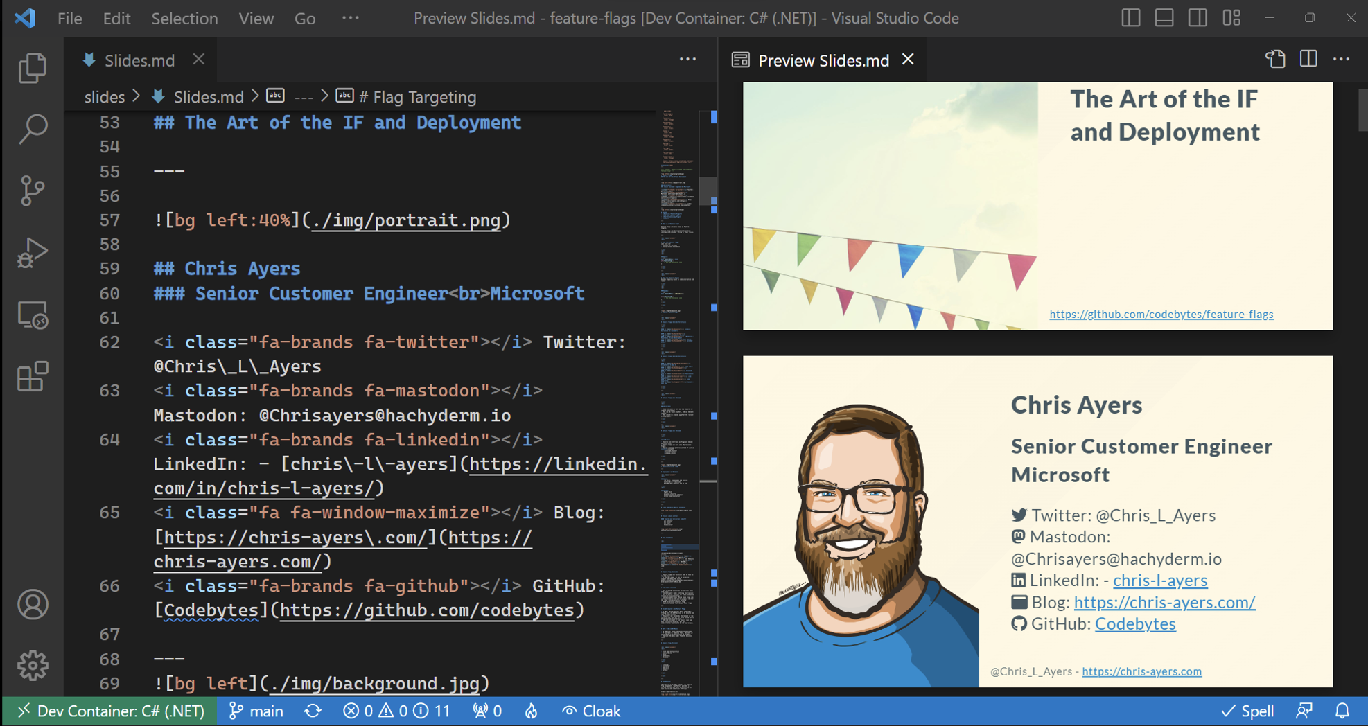 - 使用標準 Markdown 語法撰寫,並用 — 來分隔投影片。