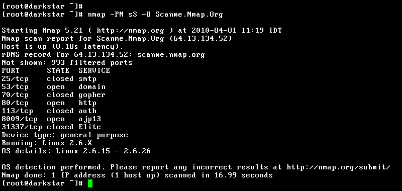 nmap -v -A scanme.nmap.org (詳細模式掃描 OS 與版本)