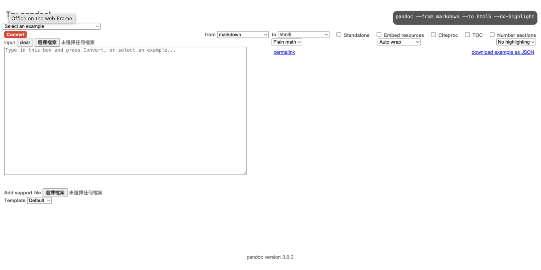 - 支援格式極廣:支援數十種輸入與輸出格式,包括 Markdown、Docx、LaTeX、ePub、HTML5、PPTX 等。
