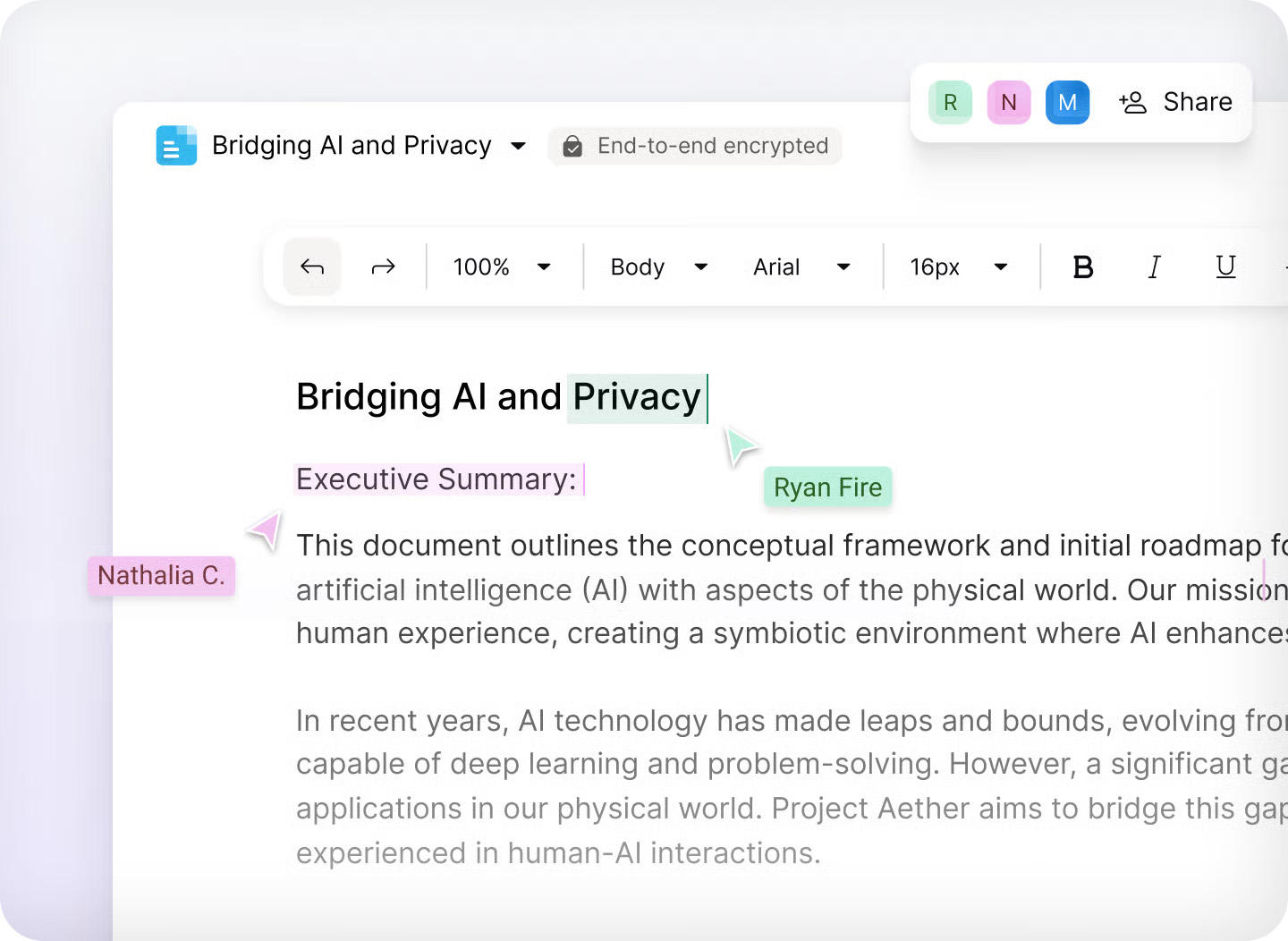 - Proton Docs & Sheets:內建加密的線上文件與試算表編輯器,支援即時協作。
