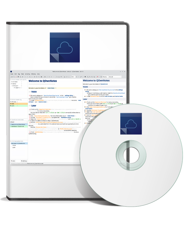 - Nextcloud/ownCloud 深度整合:支援在雲端進行版本控制、垃圾桶還原,並可與伺服器端的 Notes App 同步。