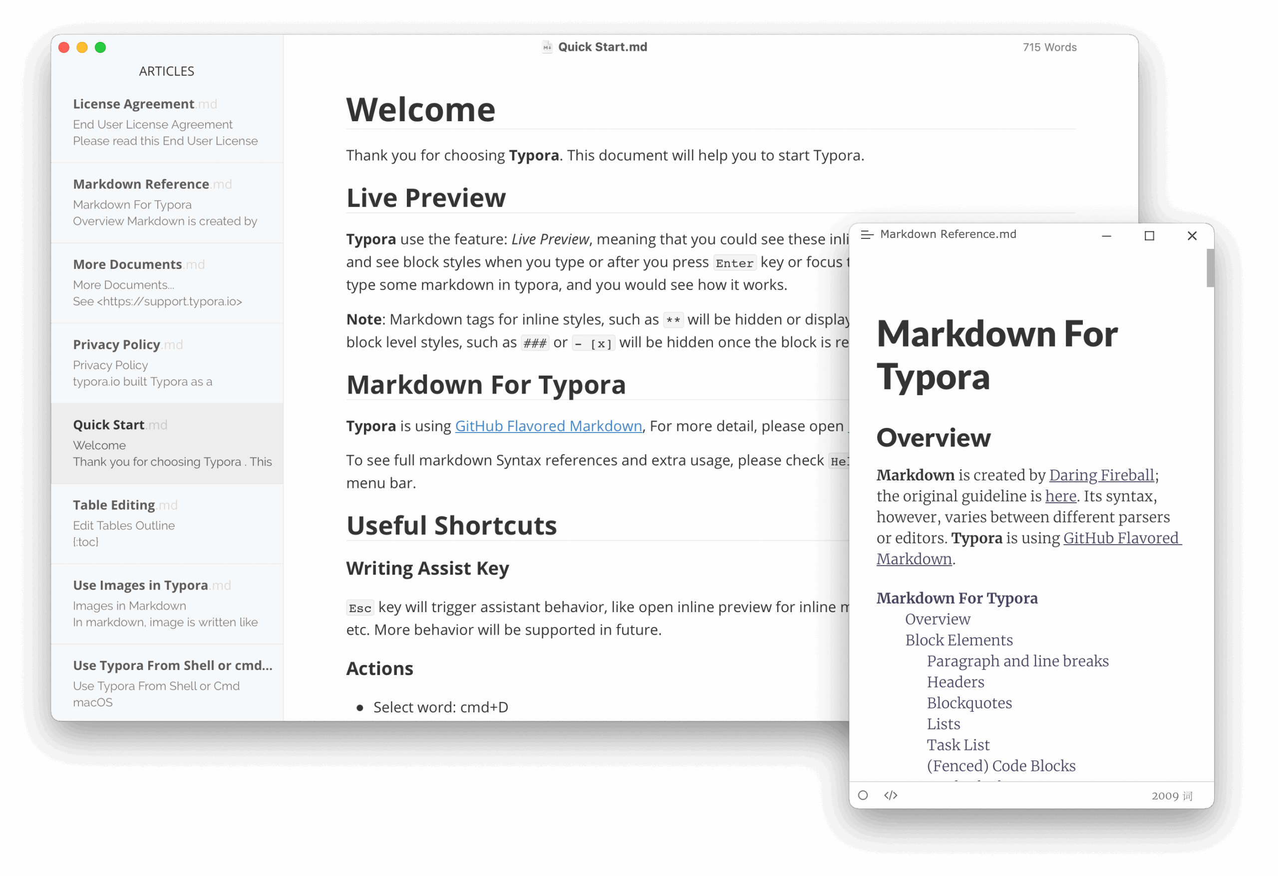 Typora 提供強大的 Markdown 編輯功能,包括: