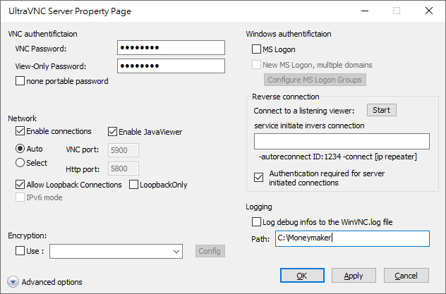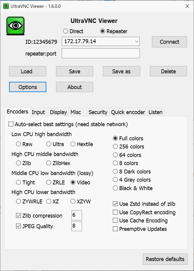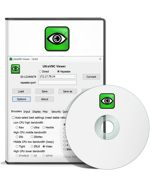 Linux:官方提供 JavaViewer,且 UltraVNC 支援標準 RFB 協定,因此 Linux 上的任一 VNC Viewer(如 TigerVNC 或 Remmina)皆可連線至 UltraVNC Server