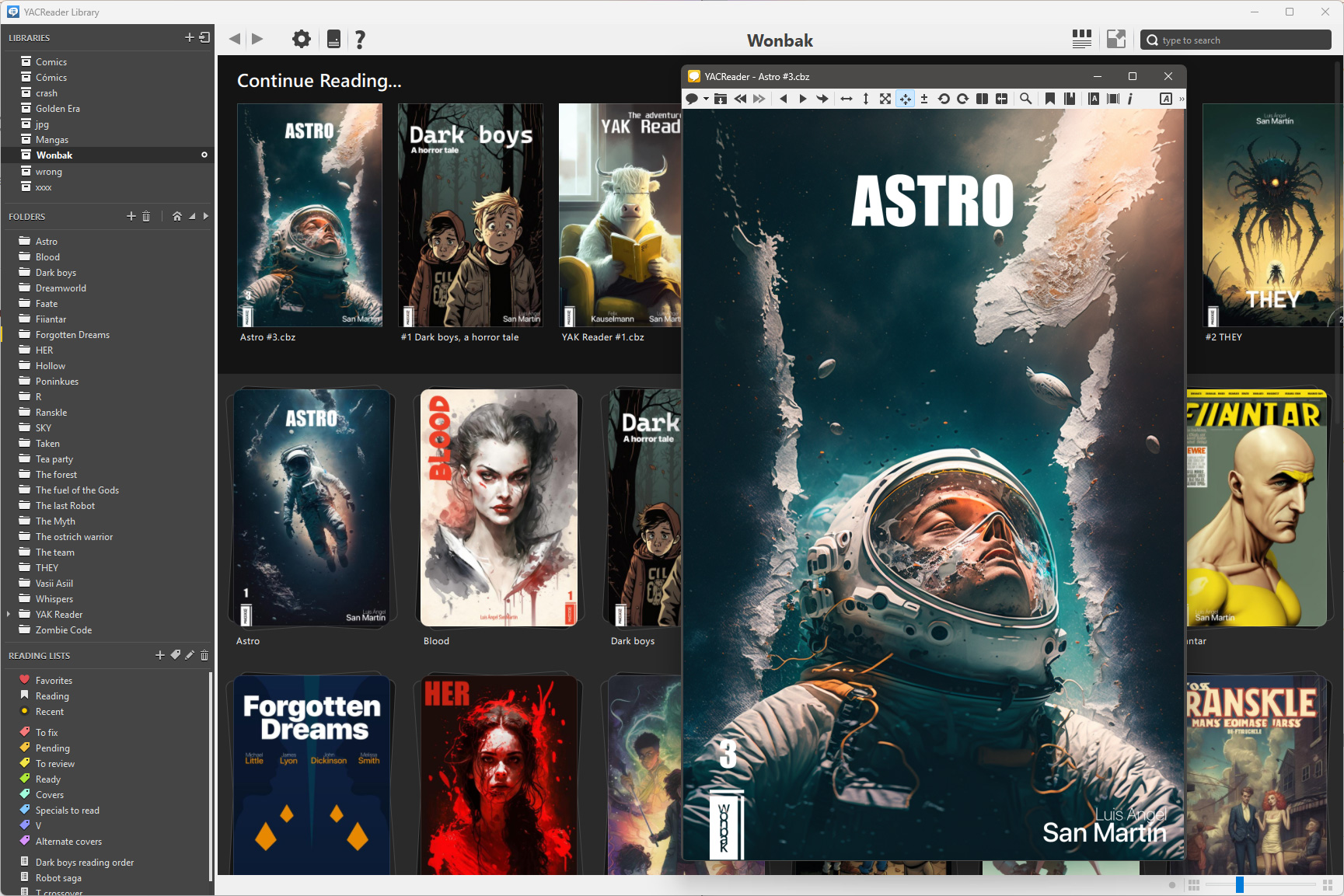 - YACReaderLibrary:內建強大的圖書館管理工具,支援以「Cover Flow」或網格方式瀏覽封面,並能追蹤閱讀進度。